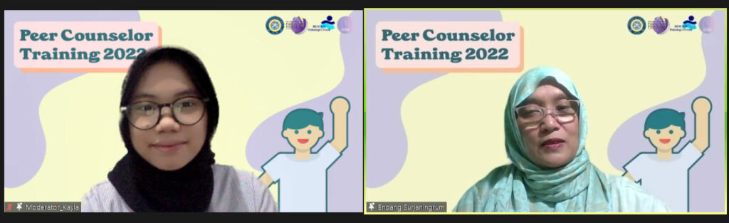 Airlangga Safe Space (ASAP) kembali menggelar Peer Counselor Training (PCT) tahun 2022 yang bertujuan untuk mempersiapkan para peer counselor yang nantinya akan menjadi bagian dari layanan program peer counseling di ASAP. Tahun ini PCT dilaksanakan selama 4 hari yaitu dimulai dari 28 dan 29 Mei 2022, kemudian dilanjutkan pada tanggal 4 dan 5 Juni 2022. Agenda kegiatannya sendiri terdiri dari tiga hari pemberian materi dan satu hari berupa FGD serta pelatihan konselor dengan mengadakan roleplay pada peserta. Untuk para trainernya sendiri yaitu diisi oleh dosen Psikologi Universitas Airlangga. Sesi FGD dan roleplay difasilitasi oleh para peer counselor ASAP 2021 dan juga bantuan dari tim UPP Fakultas Psikologi. Pada training kali ini, ASAP juga bekerja sama dengan para mahasiswa Magister Psikologi Profesi Universitas Airlangga dalam hal sebagai trainer dan pembuatan soal untuk FGD dan Role Play. Peserta tahun ini merupakan seluruh mahasiswa Fakultas Psikologi Universitas Airlangga mulai dari angkatan 2019 sampai 2021. Acara dipandu oleh MC dan Moderator dari pihak ASAP yang merupakan mahasiswa Psikologi Universitas Airlangga.