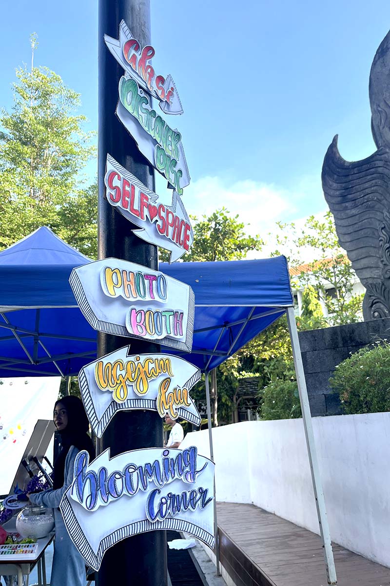 Acara dimulai dari pukul 10.00 WIB dengan diisi oleh beberapa booth dari badan dan departemen BEM KM Fakultas Psikologi. Booth dari departemen Adkesma diisi dengan “today’s mood”, di mana pengunjung booth dapat menuliskan suasana hatinya di media tulis yang telah disediakan. Kemudian, terdapat booth dari departemen SSD yang menyediakan rekomendasi kegiatan positif yang dapat dilakukan, self care, dan kalimat afirmasi untuk pengunjung. Lalu ada booth dari Badan Pengembangan dan Penjaminan Mutu Organisasi (BPPMO) yang menyediakan DISC Personality Test bagi para pengunjung yang bersedia. Departemen Kastra juga menyediakan media untuk semua pengunjung mengekspresikan pikiran dan perasaan mereka sebagai simbol berharganya sebuah suara dan juga pengunjung dapat menempelkan cap tangan mereka di kain putih yang telah disediakan.. Selain itu, bagi pengunjung yang ingin mengabadikan momen pada hari itu dapat mengunjungi booth dari Biro Medinfo yang menyediakan pelayanan photobooth.