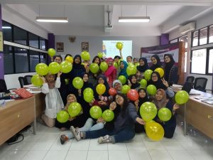 Participants were divided into pairs. There are two roles in each pair, the roles were A and B. A had to talk for 5 minutes, while B had to listen to what A said and B are not allowed to say anything to A or taking notes. Then, B was given 1 minute to conclude all the things that A had said. The role was performed alternately. The last session is about presenting the solution based on the participant’s opinion to some emotions such as love, anger, etc., shown on the slides. Each participant received two balloons and chose one colored paper. Then, the participants were divided into groups. Each group was asked to discuss ways to cope with the emotion that was given to them. After the discussion is done, participants have to write their discussion on the balloons and present it in front of the class.