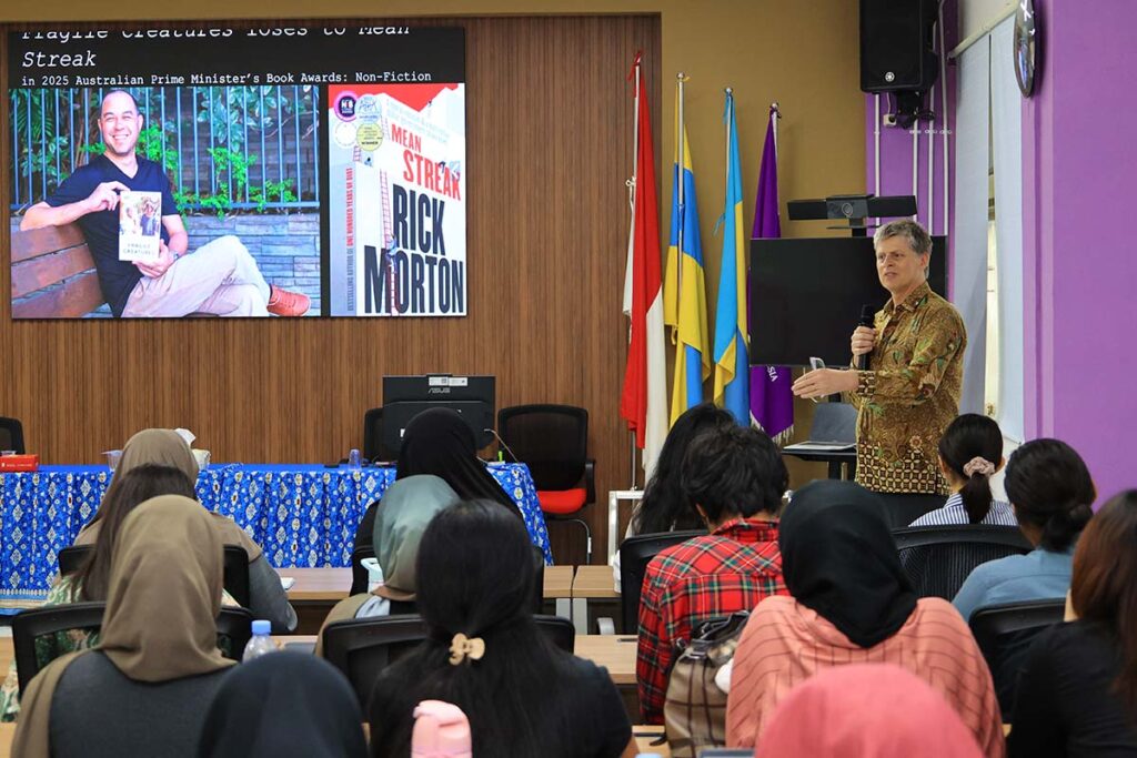 Acara dilanjutkan dengan Public Lecture pada pukul 14.45 WIB, yang menghadirkan narasumber utama, Dr. Thor Kerr dari Curtin University. Dengan topik menarik “Shaping Minds: The Role of Media in Advancing Mental Health Promotion,” Dr. Kerr memaparkan bagaimana media memiliki peran krusial dalam membentuk kesadaran, mengubah sikap, dan memengaruhi perilaku publik menuju masyarakat yang lebih sehat mental. Dalam sesi ini, peserta terlibat aktif melalui diskusi dan tanya jawab yang mengedepankan isu-isu terkini yang terjadi di sekitar kita, khususnya terkait peran media dan dampak yang dihasilkan.