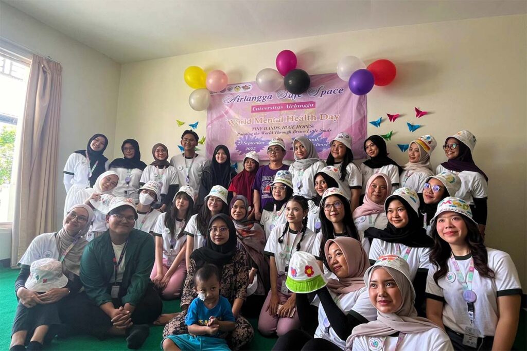 “Tiny Hands, Huge Hopes: Painting the World Through Brave Little Souls” merupakan tema yang diangkat pada kegiatan pengabdian masyarakatyang diselenggarakan pada tanggal 27 September 2025 di Yayasan Kanker Rumah Singgah Dewi. Pada kegiatan ini, Airlangga Safe Space berkolaborasi dengan Teater Boneka Psikologi UNAIR untuk menyampaikan materi kepada anak-anak mengenai “Healing with Positivity: Kuat, Ceria, dan Sehat.” Selain penyampaian materi, kegiatan ini diisi dengan berbagai kegiatan interaktif, seperti melukis bucket hat dan melukis kanvas bersama. Hasil lukisan pada bucket hat tersebut nantinya akan ditampilkan dalam art exhibition pada puncak acara World Mental Health Day. Kegiatan ditutup dengan pemberian donasi berupa hasil Open Donation, pemberian botol minum, serta bunga mawar untuk para orang tua. Pemberian ini menjadi wujud nyata dari kepedulian masyarakat dalam mendukung kesejahteraan mental anak-anak dan keluarga di Yayasan Kanker Rumah Singgah Dewi.