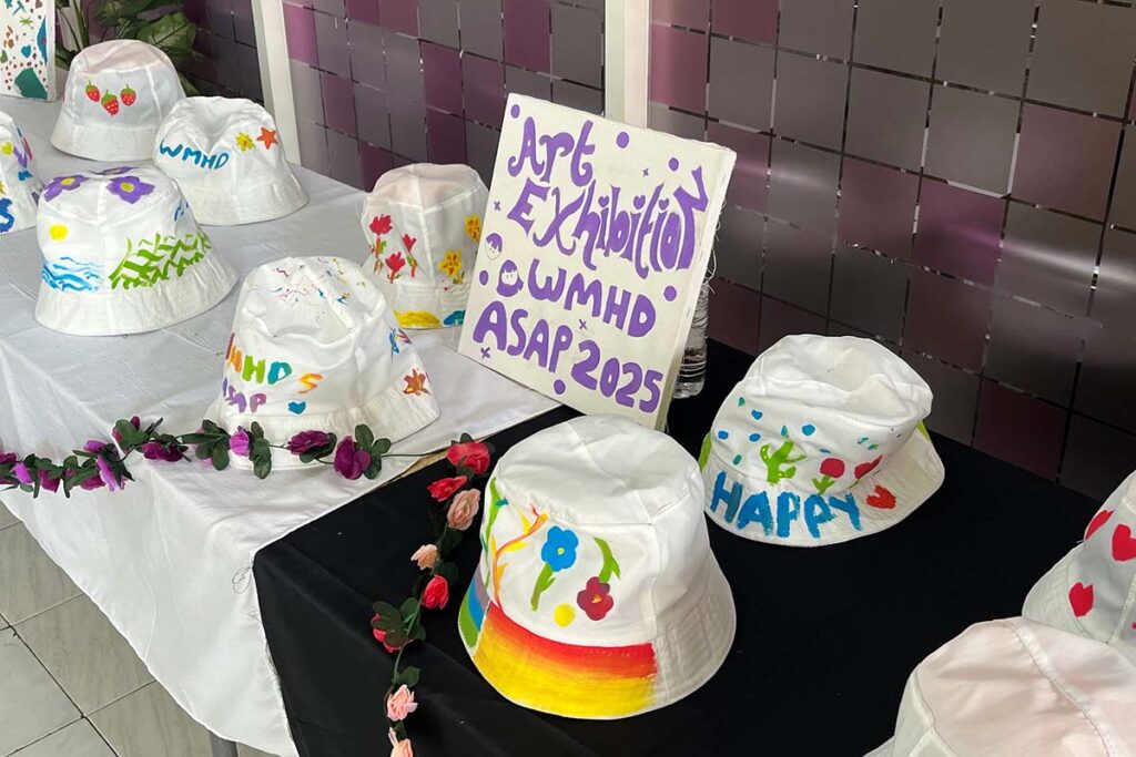 Kegiatan Puncak Acara World Mental Health Day dilaksanakan pada tanggal 18 Oktober 2025 di Fakultas Psikologi Universitas Airlangga. Acara ini menghadirkan rangkaian kegiatan yang menarik, edukatif, dan penuh makna. Kegiatan pertama adalah art exhibition, yaitu pameran seni yang menampilkan karya berupa bucket hat hasil lukisan orang tua dan anak-anak pada kegiatan pengabdian masyarakat di Yayasan Kanker Rumah Singgah Dewi. Setiap karya menghadirkan kehangatan, kreativitas, serta pesan emosional yang mencerminkan harapan mereka.