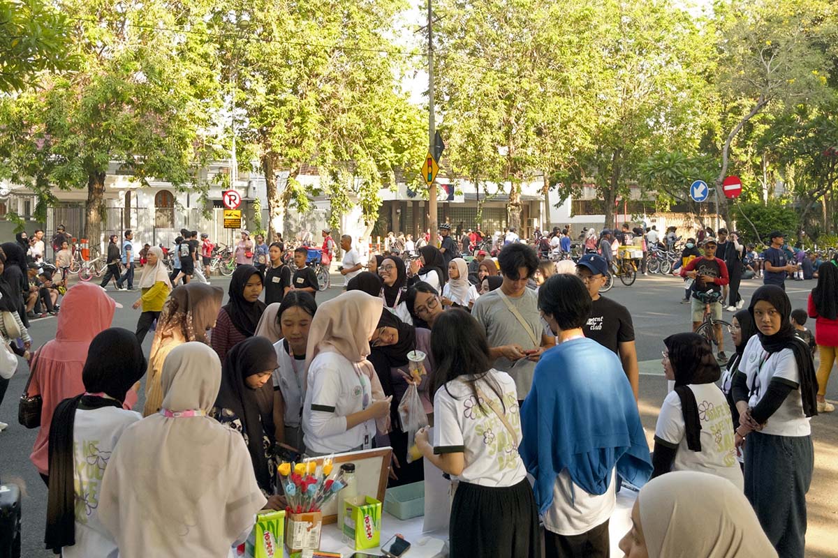 “Joy of Giving Fair” merupakan tema yang diangkat pada kegiatan charity bazaar yang diselenggarakan pada tanggal 14 September 2025 di area Car Free Day Taman Bungkul Surabaya. Pada kegiatan ini, Airlangga Safe Space mendirikan sebuah booth yang berisikan aktivitas interaktif. Pertama, spin wheel yang berisikan pertanyaan-pertanyaan seputar kesehatan mental. Kedua, letter for the future dimana pengunjung dapat menuliskan surat elektronik yang akan dikirimkan ke email pribadi mereka untuk dibaca di masa depan. Ketiga, thumb your mood dimana pengunjung dapat memberikan cap jarinya pada kanvas sesuai warna yang menggambarkan perasaannya saat itu. Warna kuning berarti bahagia, biru berarti sedih, merah berarti marah atau kesal, hijau berarti feeling positive atau optimis, oranye berarti anxiety, ungu berarti kecewa. Cap tersebut dapat dihias dengan spidol untuk menambahkan ekspresi. Lalu aktivitas terakhir yakni mini karaoke, dimana pengunjung bebas bernyanyi sesuai lagu yang pilihan mereka. Charity bazaar ini mendapat antusiasme besar dan dihadiri dari berbagai kalangan, mulai dari anak kecil, remaja, dewasa, hingga orang tua.