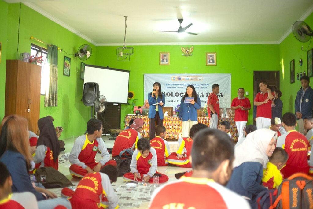 Pada tanggal 23-28 Juli 2024, Departemen Pengabdian Masyarakat BEM KM Fakultas Psikologi mengadakan kegiatan Psikologi Bina Desa atau PSIBI di Desa Pagerluyung, Kecamatan Gedeg, Mojokerto. Salah satu rangkaian kegiatan acara PSIBI yaitu dilaksanakan di SLB PKK Gedeg pada tanggal 26 Juli 2024. SLB PKK Gedeg ini sendiri terdiri dari berbagai macam disabilitas, di antaranya tunanetra, tunarungu, tunawicara, dan tunagrahita. Dalam satu hari yang sama, kami semua merayakan tiga kegiatan secara bersama-sama yaitu kegiatan anak, kegiatan workshop, dan kegiatan konseling.