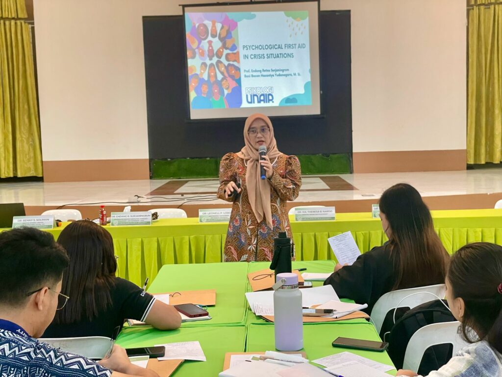 Tarlac, Filipina — Fakultas Psikologi Universitas Airlangga (UNAIR) menjalin kerja sama internasional dengan Tarlac Agricultural University (TAU), Filipina, dalam menyelenggarakan pelatihan bertajuk “Gender Responsive Training Psychological First Aid” yang dilaksanakan pada 10 April 2025 di kampus TAU, Filipina.