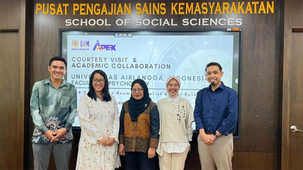 Fakultas Psikologi Universitas Airlangga melaksanakan kunjungan akademik ke School of Social Sciences Universiti Sains Malaysia (USM) pada 25–27 November 2025. Kegiatan ini merupakan bagian dari Siri Seminar Akademik PPSK 2025 dan ditujukan untuk memperkuat hubungan kelembagaan, memperluas jejaring akademik, serta membuka peluang kolaborasi riset dan pengembangan program pendidikan antara kedua universitas.